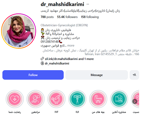 دکتر مهشید کریمی، جراح و متخصص زنان، زایمان و نازایی یکی از بهترین متخصصان در حوزه پزشکی هستند و عضو انجمن باروری و ناباروری ایران (ISRM) و انجمن باروری و ناباروری اروپا میباشند همچنین ایشان عضو انجمن جراحان ایران بوده و مقالات ارزشمند خود را در مجلات ISI منتشر کردهاند و با استفاده از تکنیکها و روشهای پیشرفته، بهترین خدمات پزشکی را به بیماران ارائه میدهند.