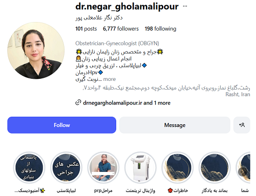 دکتر نگار غلامعلی پور، متخصص زنان، زایمان و نازایی فارغالتحصیل پزشکی عمومی از دانشگاه علوم پزشکی گیلان هستند و در رشته تخصصی جراحی زنان و زایمان در همان دانشگاه تحصیلات تکمیلی خود را ادامه دادند و ایشان عشق و علاقه ویژهای به رشته خود داشته و به عنوان یک عضو کوچک از جامعه پزشکی، همواره تلاش کردهاند تا بیماران خود را درمان کنند.